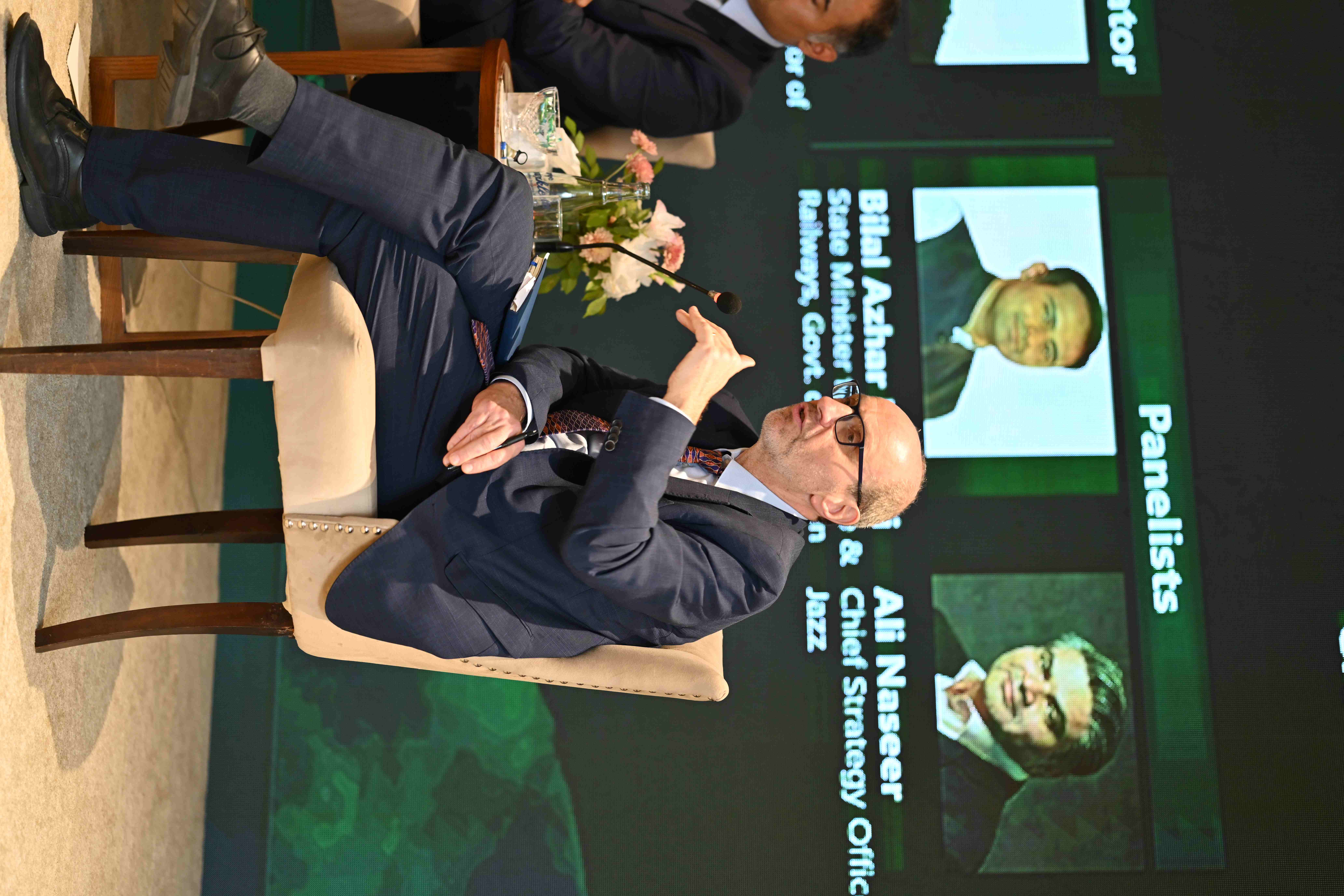 A panel discussion titled "From Budget Lines to Bottom Lines: Turning Policy into Growth" brought together Mr. Bilal Azhar Kayani, State Minister for Finance and Railways; Mr. Ali Naseer, Chief Strategy Officer at Jazz; and Dr. Dercon, moderated by Dr. Ali Hasanain, Associate Professor of Economics at LUMS. The conversation moved between tariff reform, industrial policy, the case for policy consistency, and the conditions under which structural change becomes politically possible. Minister Kayani spoke to the government's commitment to the national tariff policy and the importance of reducing its footprint in the economy. Mr. Naseer drew on his experience across both the public and private sectors to argue for digital infrastructure as one of Pakistan's most credible growth levers.