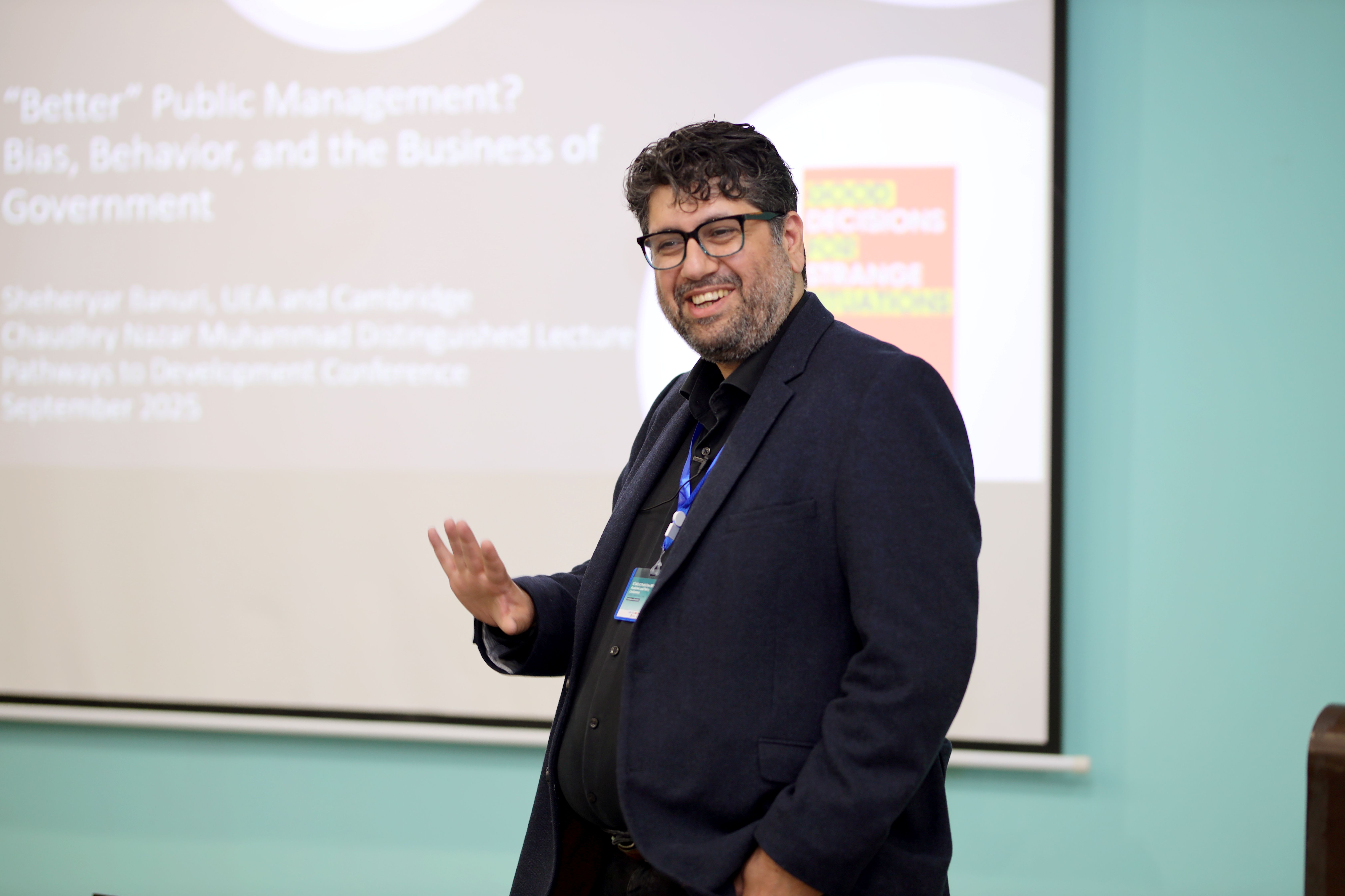 During the Chaudhry Nazar Muhammad Distinguished Lecture, Dr. Sheheryar Banuri of the University of East Anglia challenged common assumptions about how public institutions work. His research across multiple countries, including Pakistan, showed that many government employees are genuinely motivated to serve the public good. "The idea of intrinsic corruption doesn't seem to be as accurate," he argued. "It might be more of an institution story."